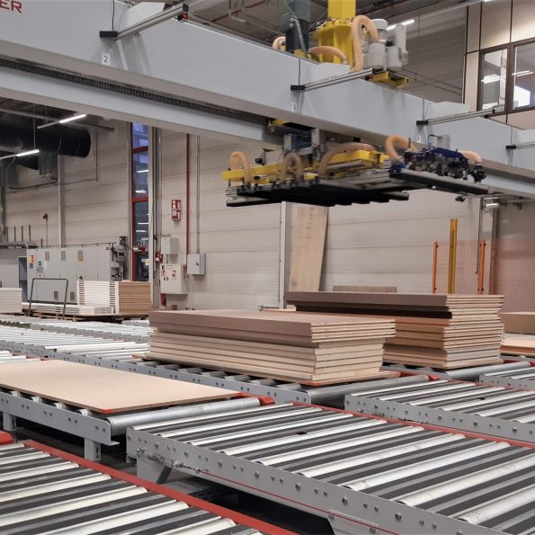 - Zur Bestückung und Abnahme, vor und nach Bearbeitungsmaschinen (z.B. Imprägnier- oder Fräsanlagen)